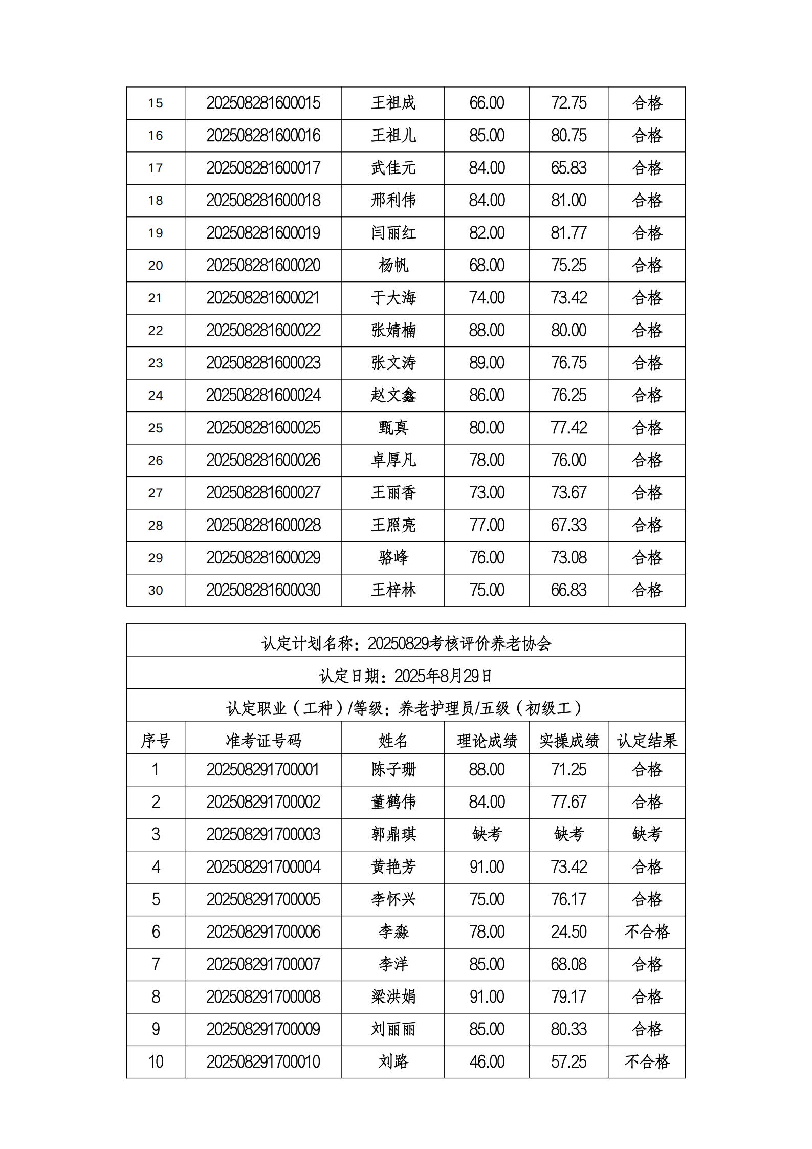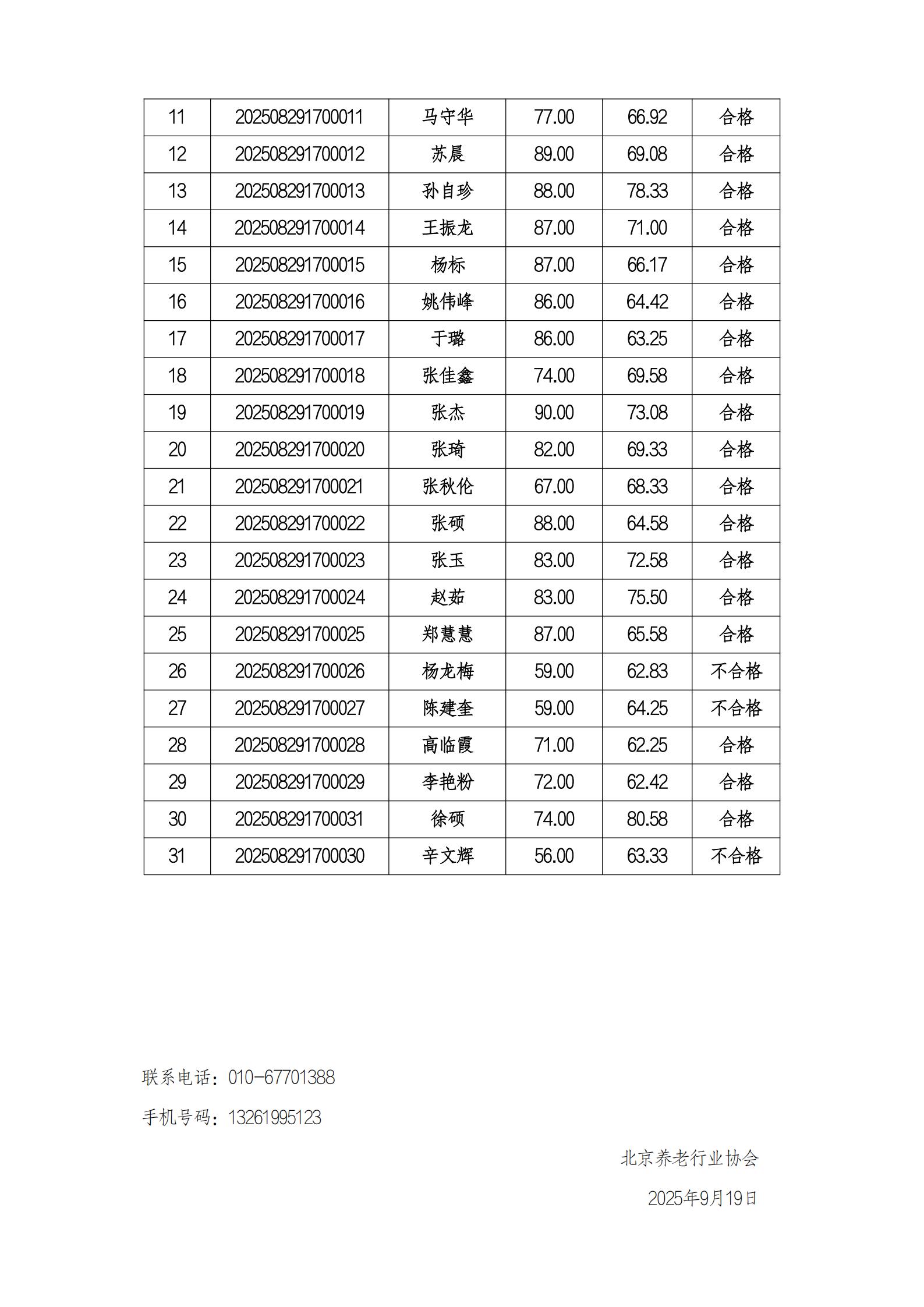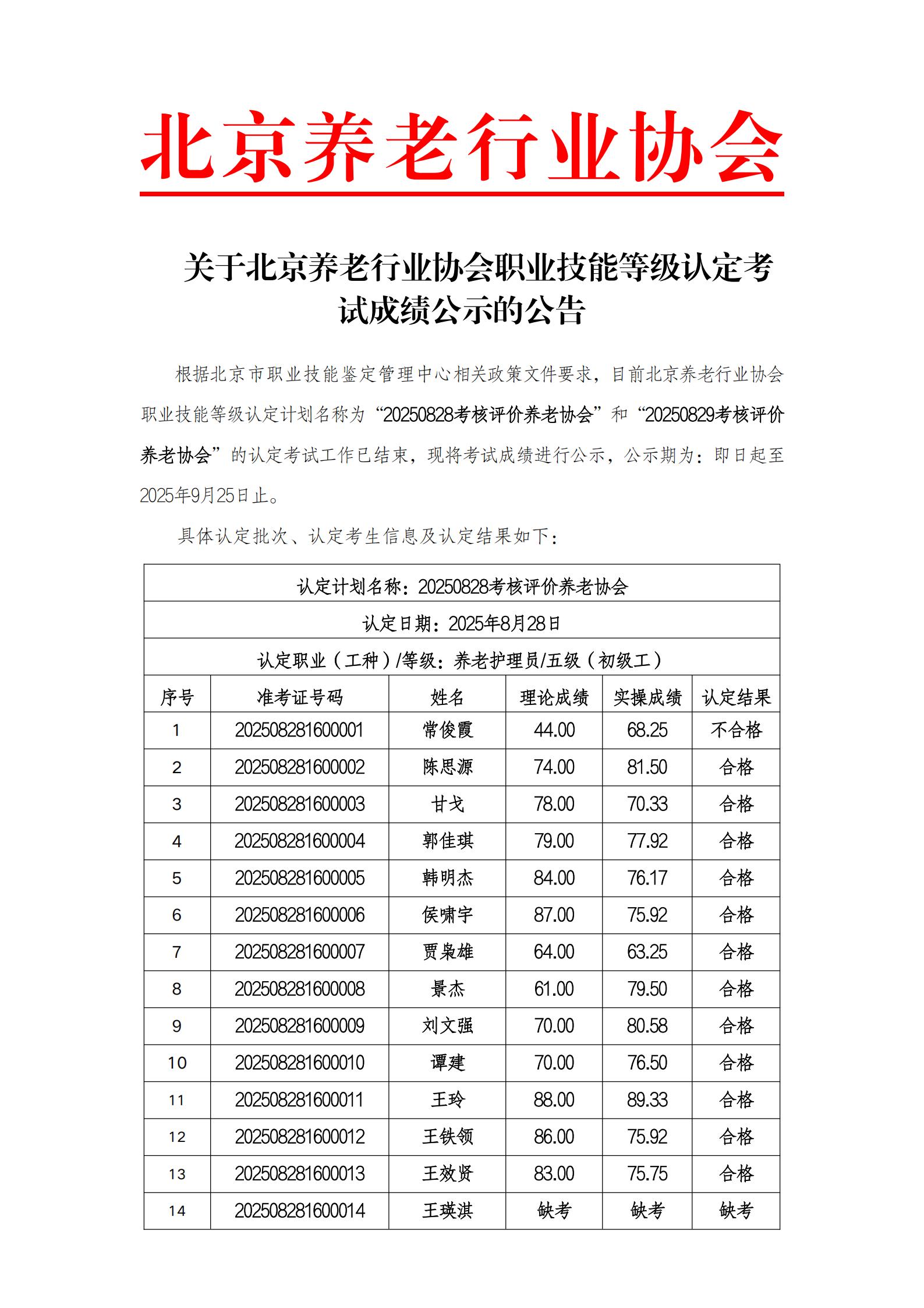 关于北京养老行业协会职业技能等级认定考试成绩公示的公告