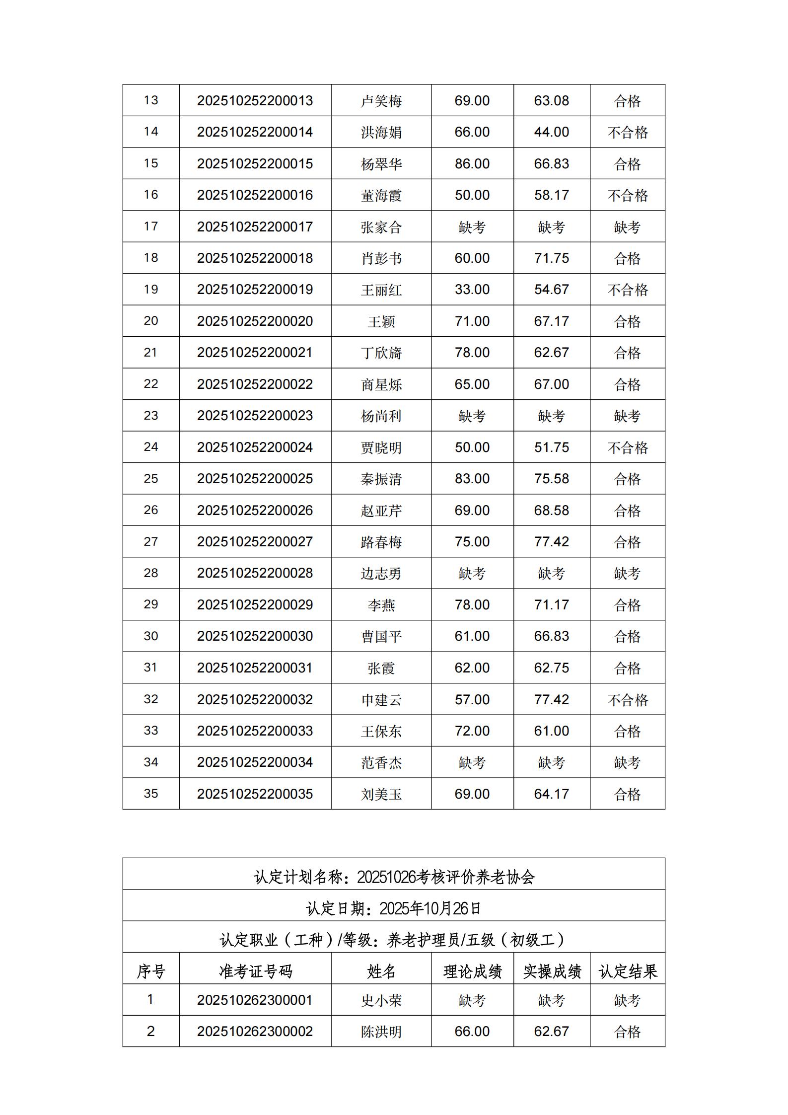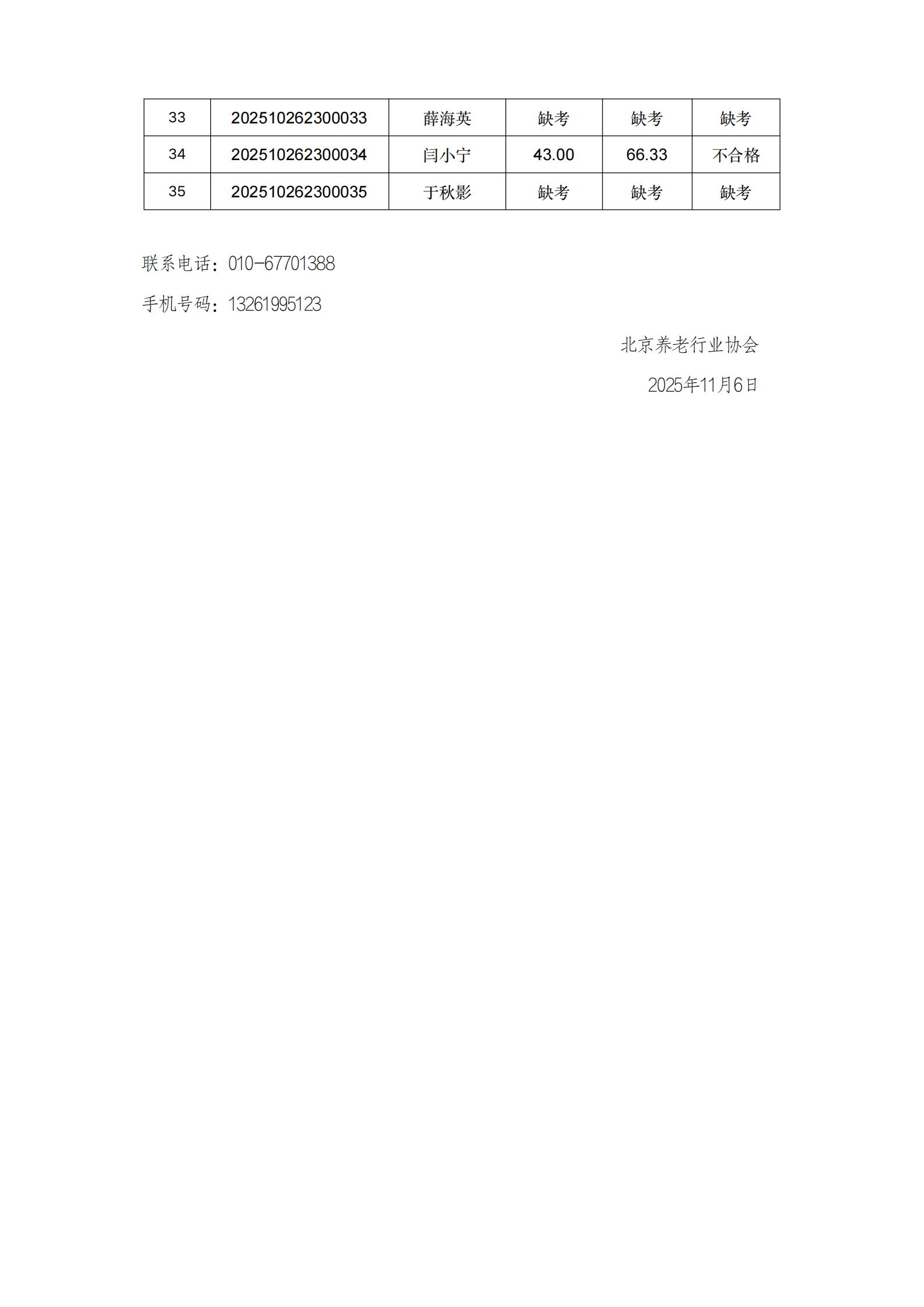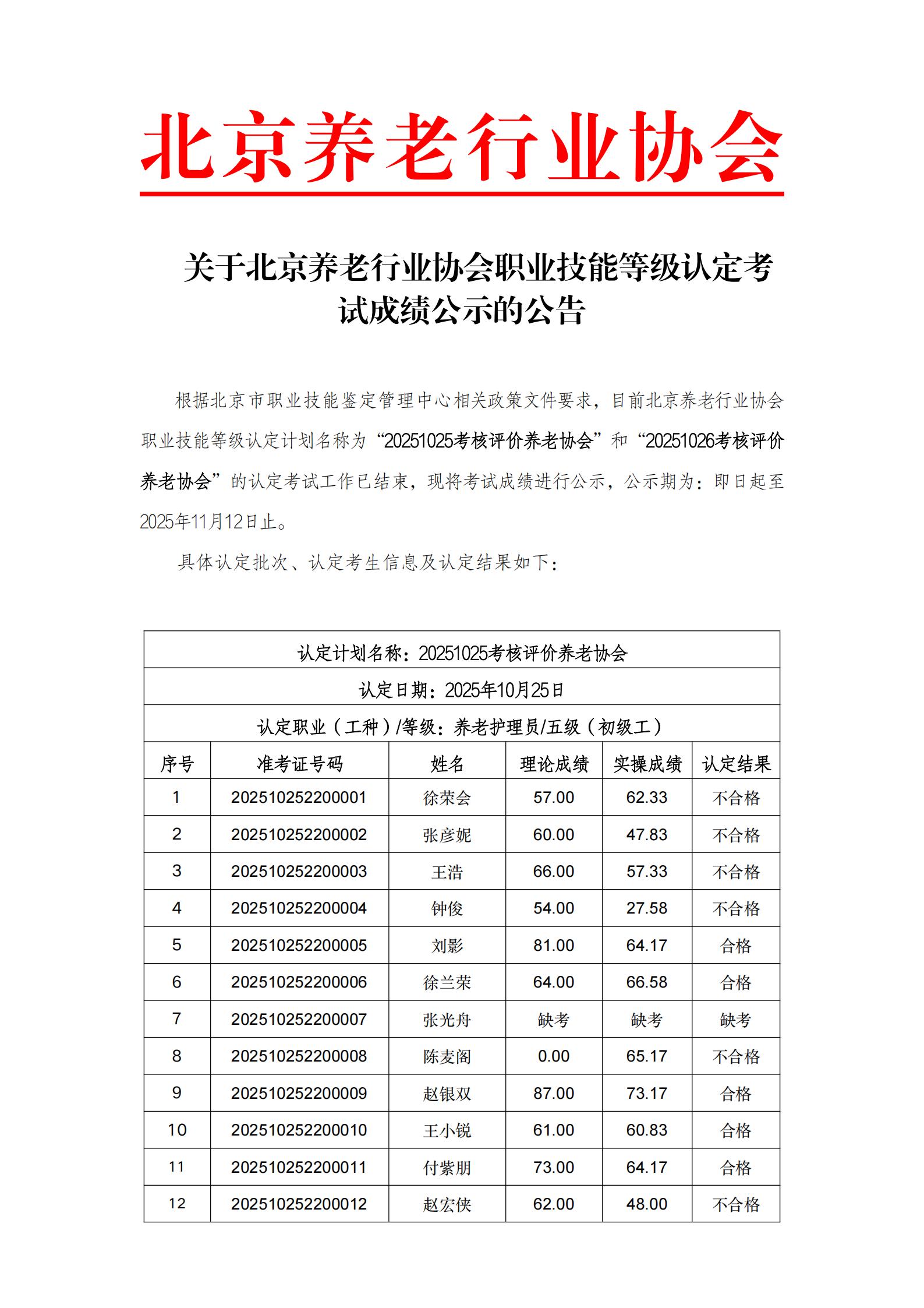 关于北京养老行业协会职业技能等级认定考试成绩公示的公告