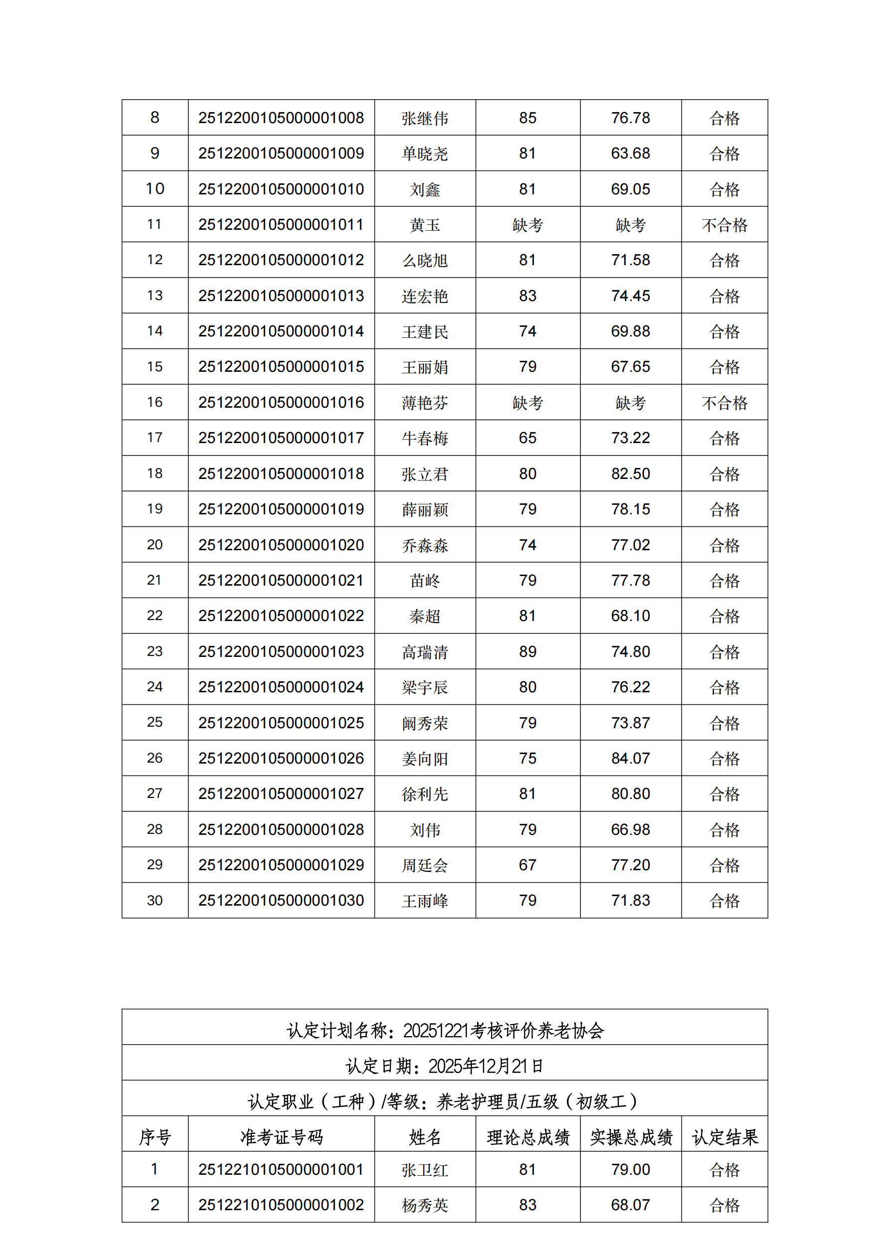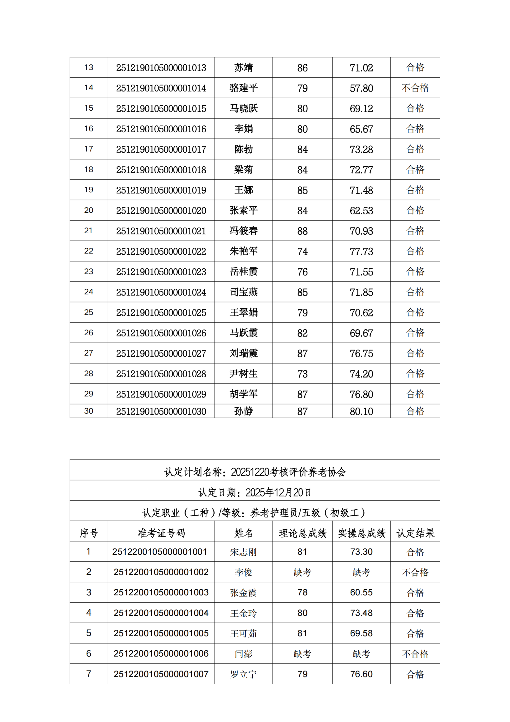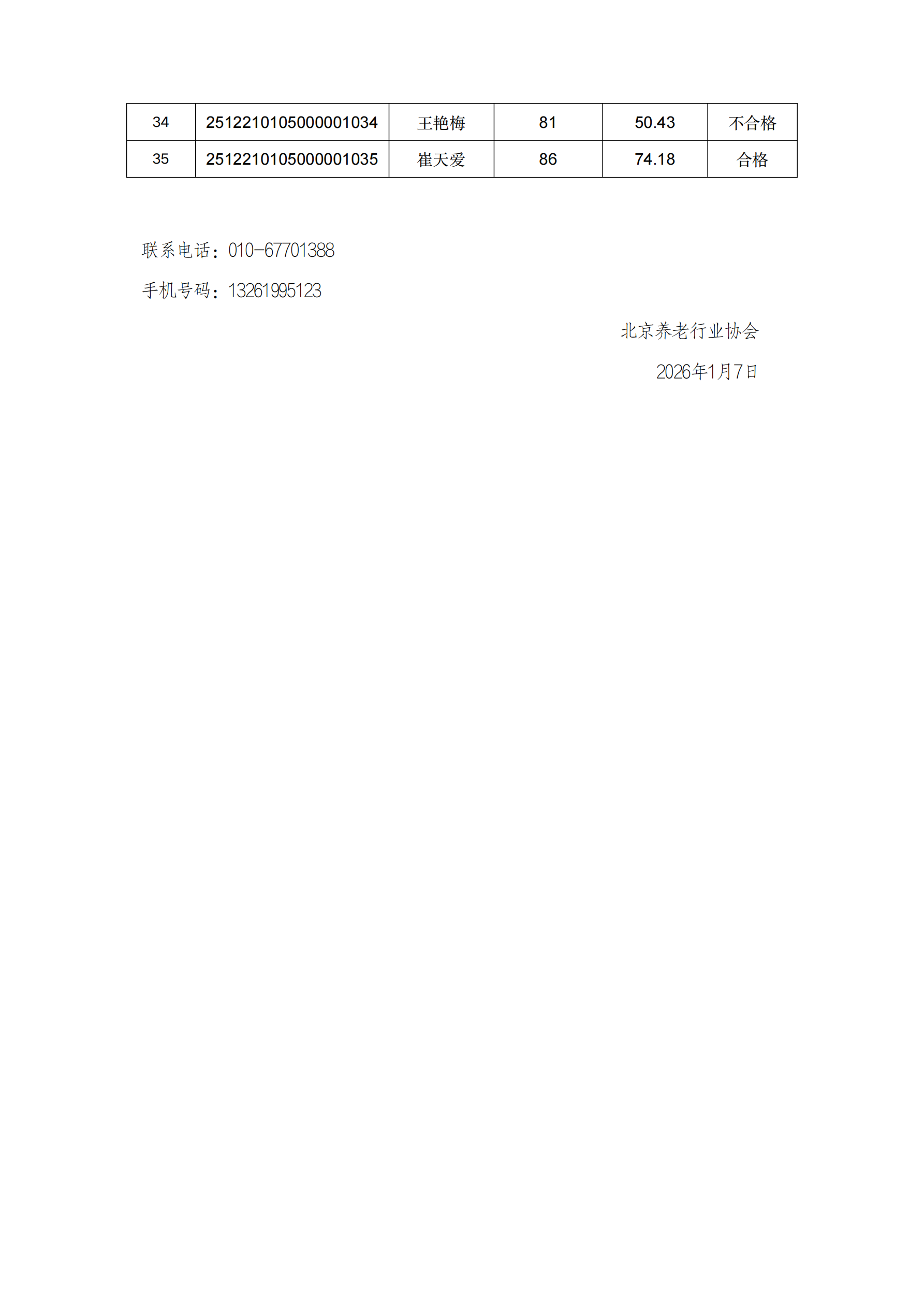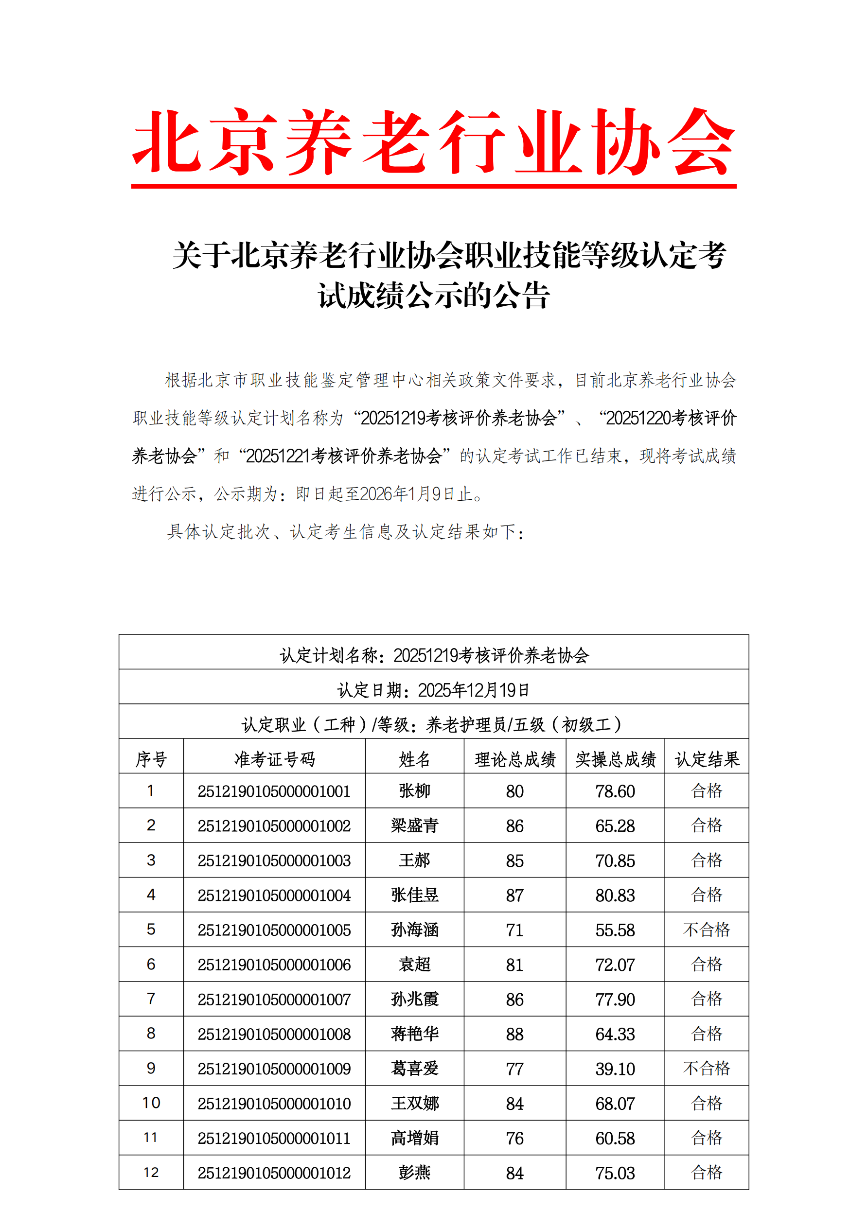 关于北京养老行业协会职业技能等级认定考试成绩公示的公告