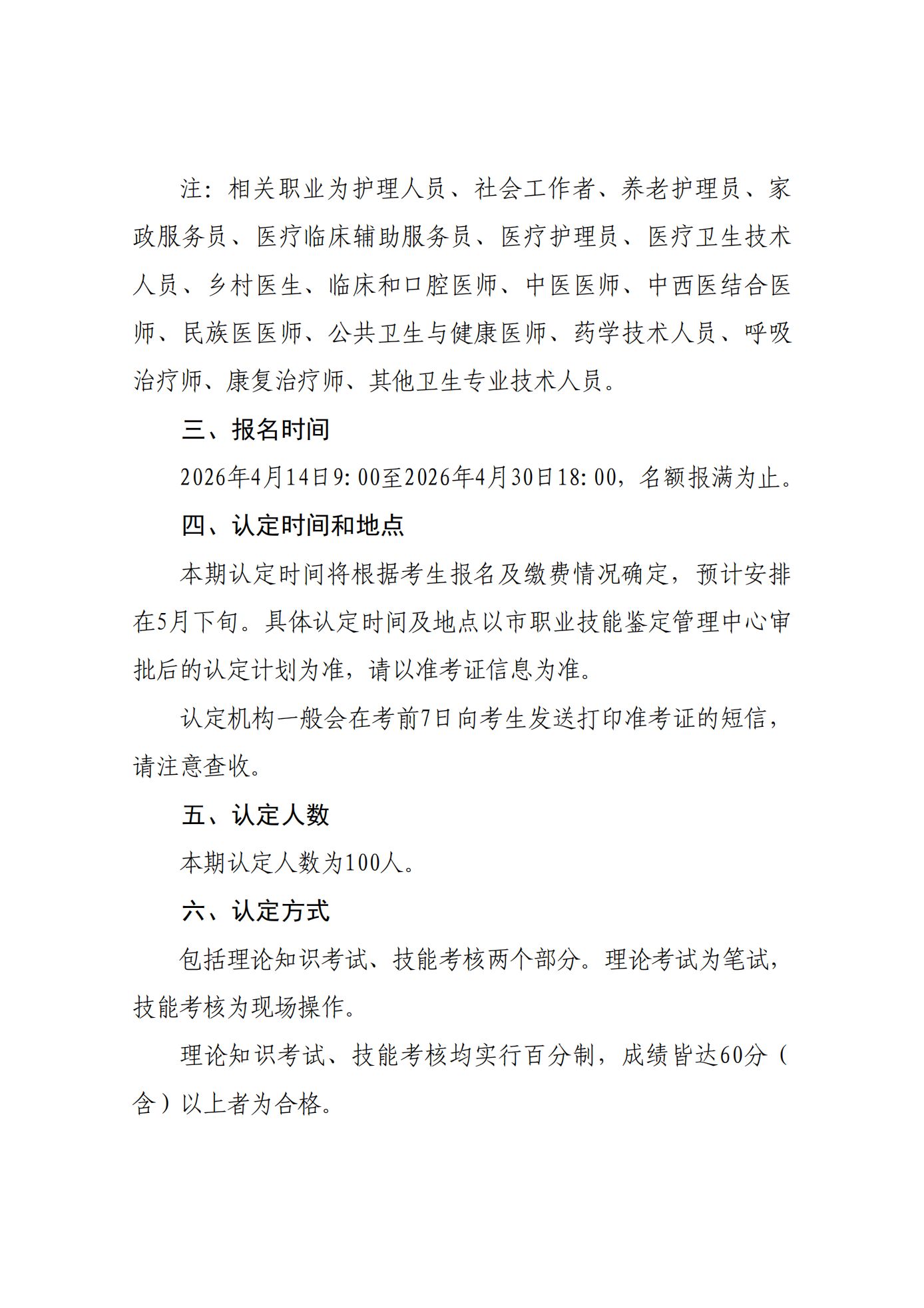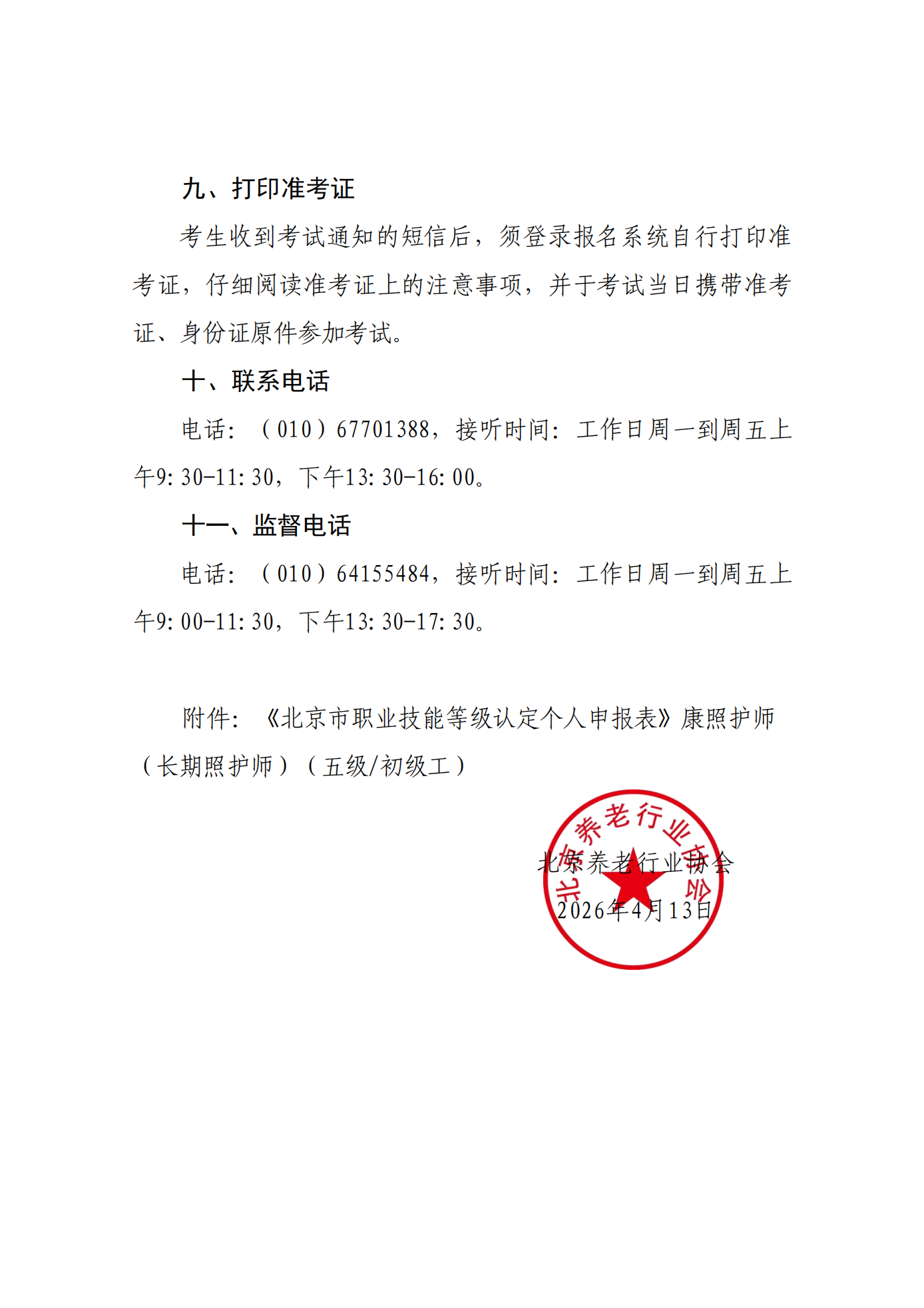 关于开展2026年度北京市养老护理员职业技能(五级/初级工)等级认定考试报名的通知